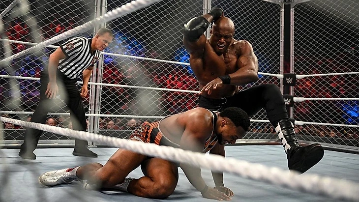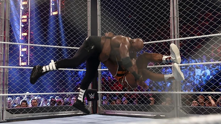 10) Биг И против Бобби Лэшли - титульный поединок за мировое чемпионство WWE (в тяжёлом весе) по правилам Steel Cage Match.