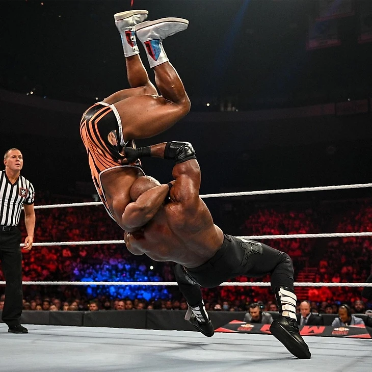 1) Биг И против Бобби Лэшли - титульный поединок за мировое чемпионство WWE (в тяжёлом весе).