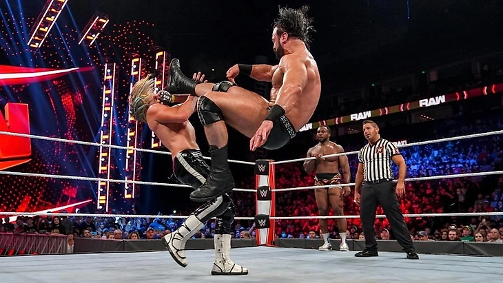 После оглашения результатов 3-го раунда, Биг И всё-таки выступил со своим заявлением. Он расстроился тому, что Кофи и Ксавье снова отправили на другой бренд отдельно от Биг И - тут зрители поддержали чемпиона и он их поблагодарил. Но также Биг И счастлив тому, что своей победой над Бобби Лэшли в мэйн-ивенте прошлого выпуска он доказал самое главное. Именно то, что Биг И отныне полностью легитимный чемпион WWE. Но не успел Биг И перевести дух и насладиться своим успехом, как образовался новый оппонент. И как признал сам Лэнгстон - этот парень точно не будет шутить или валять дурака на потеху публике, поэтому встречайте (просьба к зрителям), Дрю Макинтайр!!! Шотландец вышел при параде со своим мечом для очной ставки с мировым чемпионом. Дрю успел потроллить фишку Нового Дня и признаться в том, что технически он тут не должен быть. Но он бросил свой вызов к Биг И и хочет завершить начатое, тем более что он вспомнил о событиях прошедшего лета. Именно о том, как Макинтайр сам пострадал от козней MVP и Бобби Лэшли. Дрю конечно также немного пожурил Биг И и его кэш-ин на побитом Лэшли пару недель назад, но Макинтайр не осудил Биг И - ибо в случае Бобби это было кармой (тут Дрю поиграл словами насчёт февральского кэш-ина на нём самом) и Лэшли заслужил такое наказание.