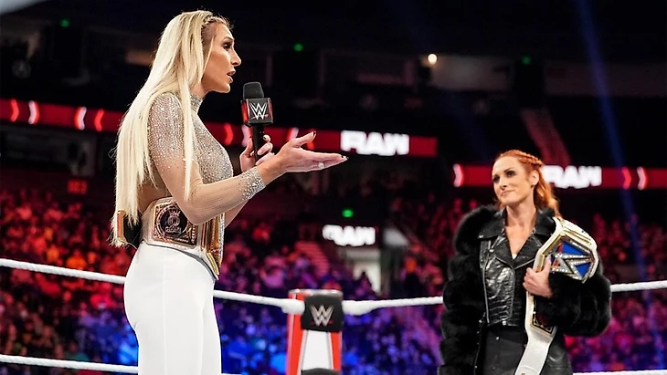А пока Кори Грейвс позволил себе поворчать на тему того, что официально Бекки не в составе красного бренда, на ринг вышла Шарлотт Флэр. Разумеется её встретили негативно, но вместо буканья фанаты усилили чанты "Becky 2 Belts". Шарлотт же в это время принялась рассуждать о том, как она помогла Бекки обрести себя и стала невероятно популярной - чего уж стоит то, что когда-то Линч была не просто милой гаечкой, но и вечной обитательницей пре-шоу на PPV. Флэр приятно видеть, что Бекс не только поборола свои комплексы, но и старается ровняться на такую как Шарлотт. Однако между ними ещё есть незавершённые моменты и Бекки решила об этом напомнить. Тут Флэр была прервана выходом Бьянки Белэйр с микрофоном в руках, зрители встретили её также одобрительно.