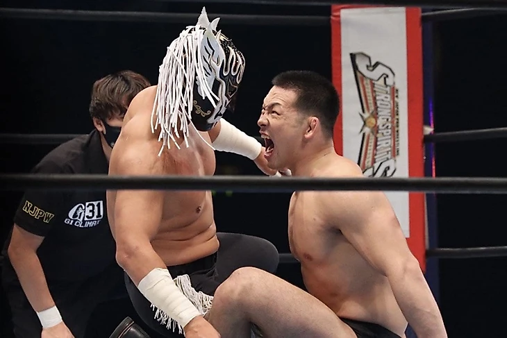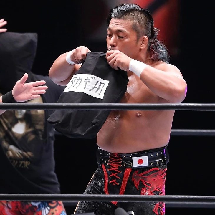 Рестлеры уже встречались друг с другом, на G1 Climax 29. Тогда Такаги победил. Гонг прозвенел, и Тору сразу схватился за свой мешок, чтобы вытащить из него… еще один мешок, точно такой же, и дать его оппоненту. Но Яно расстроился по этому поводу, ведь он предлагал надеть им обоим мешки на голову, и начать бой вот так. Ну что делать, Шинго решил согласиться, и также натянул на голову мешок, но в этот момент «Король про-рестлинга» свой мешок снял и попытался свернуть чемпиона мира, но только до 2. Такаги вскочил на ноги, нацепил свой мешок на голову Яно и отправил его за пределы ринга шоулдер тэклом. Тут Тору реверсировал запуск в баррикады, освободил свою голову, побрызгал санитайзером в глаза «Дракона», потом налил этой же жидкости в мешок, надел его на голову Шинго и закинул «Дракона» под ринг. Тот, естественно, выбрался, снял мешок с головы и вернулся в четырехугольник, где Яно снял защиту с углов. В итоге, у обоих рестлеров в руках оказалось по тернбаклу, и Такаги, выбив подушечку из рук оппонента, атаковал его, кинул ему в руки свой тернбакл и провел клоузлайн. Таким образом представитель LIJ захватил контроль и провел несколько классических рестлинг маневров. Немного трэш-тока, и Тору разозлился, начав отвечать ударами на удары, и победил в этом размене… да никто особо не победил, просто Яно прервал этот обмен с помощью белли-ту-белли. Еще пара атак прошла, и от атаки в углу Тору спрятался за рефери, а затем запускал недруга в незащищенный угол, свернув до 2. В следующем эпизоде Яно схватил судью, смог провести удар ниже пояса и свернул Такаги до 2, но уже в следующем эпизоде, пусть и не без использования рефери как живой щит, Шинго провел Pumping Bomber. Слайдинг лэриэт до 2 последовал, после того, как «Дракон» натянул майку Тору ему же на лицо, а Last of the Dragon принес Такаги победу. Сразу после финального гонга чемпион мира натянул чемпиону KOPW 2021 на голову один из 2 мешков, а второй использовал как носовой платок.