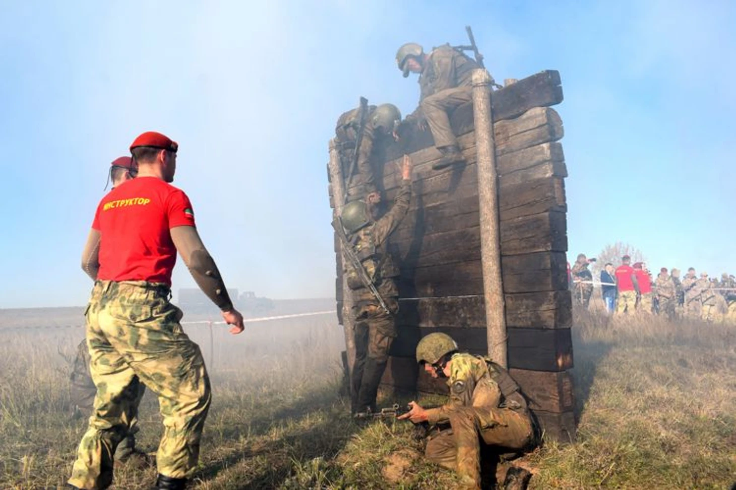 После марш-броска спецназовцы сходу преодолели специально-штурмовую полосу, прикрывая и страхуя друг друга. За исполнением всех элементов внимательно следили опытные инструкторы. Кандидату достаточно получить три замечания или допустить грубую ошибку, чтобы досрочно выбыть из испытаний.