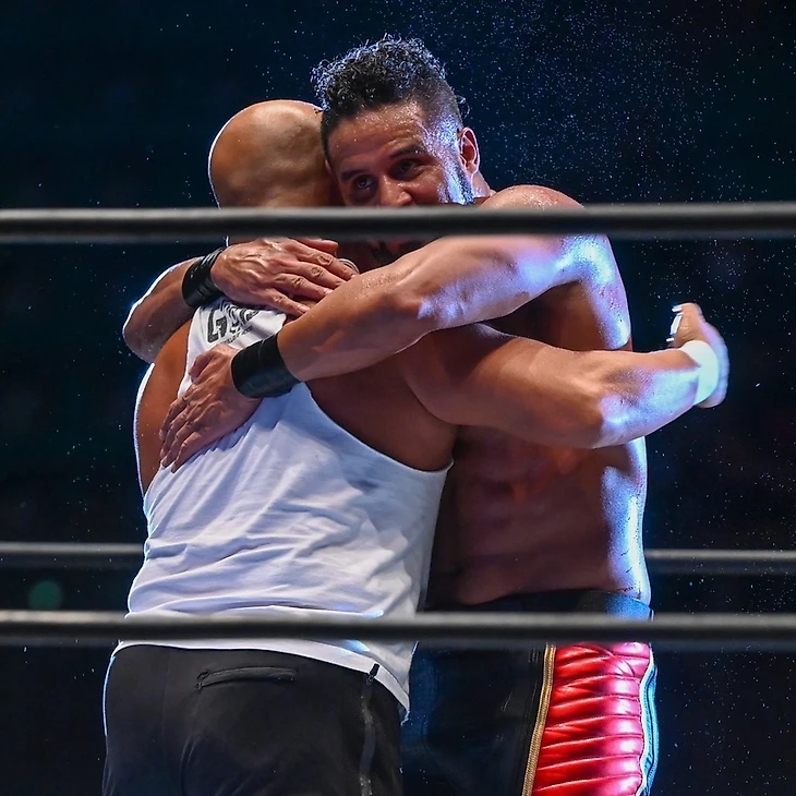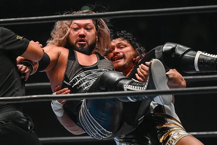Money Clip Time, и Тама дотянулся до канатов, за что получил скуп слэм и элбоу дроп с третьего каната. Rainmaker Тама перевел в Valeno, а вот Tongan Twist Казучка реверсировал, и серия реверсов привела к Complete Shot от 7-кратного командного чемпиона. Tongan Twist до 2, и на Gun Stun Казучика ответил своим Spinning Rainmaker. Томбстоун не прошел, и очередная серия реверсов привела к хай кику от Тонга, и Окада промазал шотган дропкиком, попытался реабилитироваться с помощью air raid neckbreaker, но попал под Death Valley Bomb и сплэш до 2. Jay Driller Казучика заблокировал, и лидер CHAOS провел бэк бади дроп, за что получил серию ударов. Мощный дропкик вернул Окаду в игру, а спиннинг Томбстоун должен был привести к Rainmaker, однако Тама реверсировал, почти провел Gun Stun, и после очередной серии реверсов Тонга ушел от дропкика, однако Gun Stun снова не прошел и «Хороший плохой парень» провел брэйнбастер. Gun Stun Окада заблокировал, но Landslide Tombstone Тама перевел в Gun Stun в самый последний момент. Удержание до 2, и Jay Driller принес, наверное, самую большую сольную победу в карьере. В коротком послематчевом промо Тама сделал отсылку на Окаду, сказал, что сегодня победил «Рэйнмэйкера», заявив, что переписал свою собственную историю.