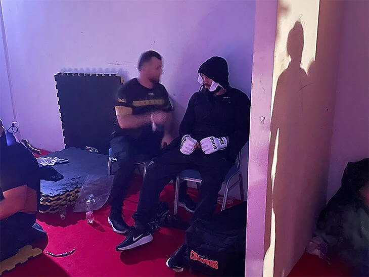 Разминались в маленьких комнатках примерно 2х2 метра: с нехваткой не только места, но и воздуха. За кулисами было очень душно, а секунданты бойцов в периодах быстро открывали-закрывали двери раздевалок, чтобы хоть как-то проветрить помещение.