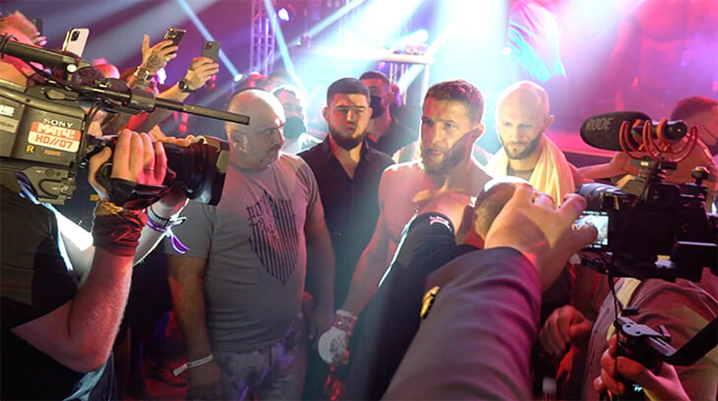 Стадион заполнили быстро, а участники главного боя появились неожиданно поздно. Мейнкард, состоявший из 5 поединков (включая реванш), стартовал в 21:30, Мага же приехал в 21:36, Владимир – в 21:47. Исмаилову еще предстояло затейпироваться, Минеев уже был в бинтах.