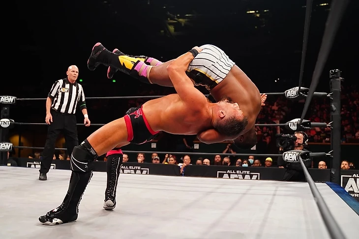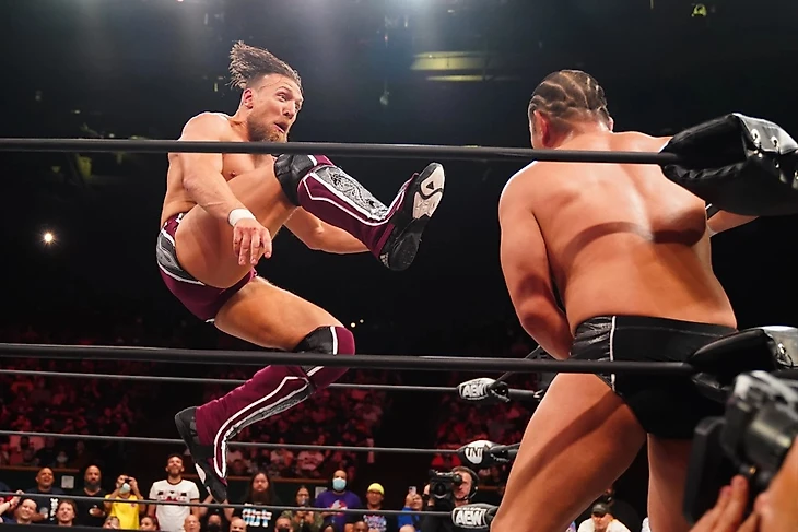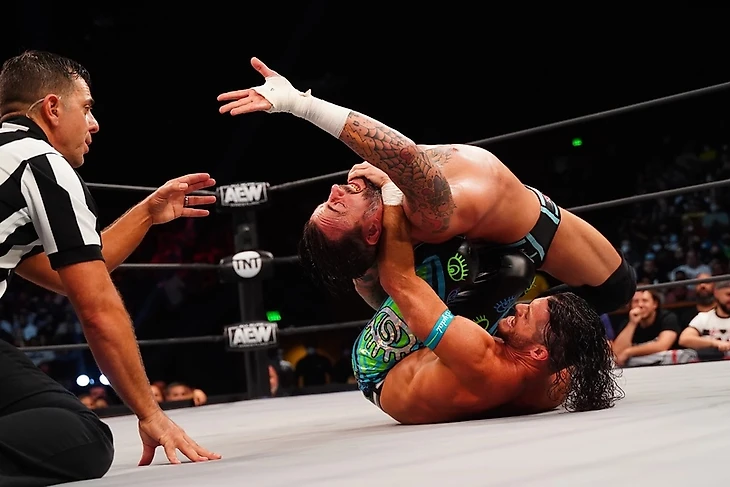Во-первых, вывеска «Сузуки — Дэниелсон» — это вывеска, которая может продать шоу на любой арене (практически) в любой части света. То есть, это вывеска, за которую люди готовы заплатить деньги. Но AEW устроили этот матч на бесплатном пре-шоу к еженедельнику. Что за подарок для фанатов? Естественно, ожидания были высочайшими, и, имхо, борцы оправдали эти самые ожидания, выдав классический поединок, который стал особенным моментом еще даже до стартового гонга. Знаете, когда имена в заголовке матча автоматически его продают, то рестлеры могут, например, отработать в «энергосберегающим режиме», тем более, что это на Buy-In. Но эти двое выдали максимум того, что могли в сложившихся обстоятельствах. Тут было все, за что мы любим Брайана, за что любим Сузуки, и противостояние стилей, в каком-то смысле, это был одновременно и американский и очень японский матч. Словом, все круто. Результат, пожалуй, тоже правильный, при всей моей симпатии к Минору, Брайан не должен был проигрывать тут. Спасибо, правда, за то, что Сузуки был удержан, а не сдался, то есть, насколько могли защитить его в поражении, настолько защитили.