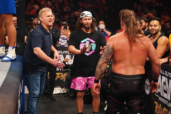 Время интервью перед мэйн-ивентом. Дэн Ламберт поделился своими мыслями о дебюте Дос Сантоса в AEW. Да, для Джуниора это первый матч на рестлинг-ринге, но во-первых, ему не привыкать надирать задницы, он делал это всю свою жизнь, а во-вторых, у него будет отличная поддержка в лице Men ot the Year и Хорхе Масвидаля в углу. Джерико ответил на это, что сегодня действительно историческое шоу, ибо дебют Дос Сантоса в про-рестлинге — это событие. Крис помнит свой дебют. Он тогда сильно нервничал, не знал, что делать, но при этом чувствовал поддержку от близких и семьи. Так что бабушка может испечь Джуниору торт, а Inner Circle сегодня сделают то, что делают лучше всего — надерут ему зад, пока Mey of the Year, Масвидаль и Ламберт — жирный он кусок дерьма — будут смотреть на это. Ведь в AEW нет никого более сумасшедшего, чем Крис Джерико и Inner Circle.