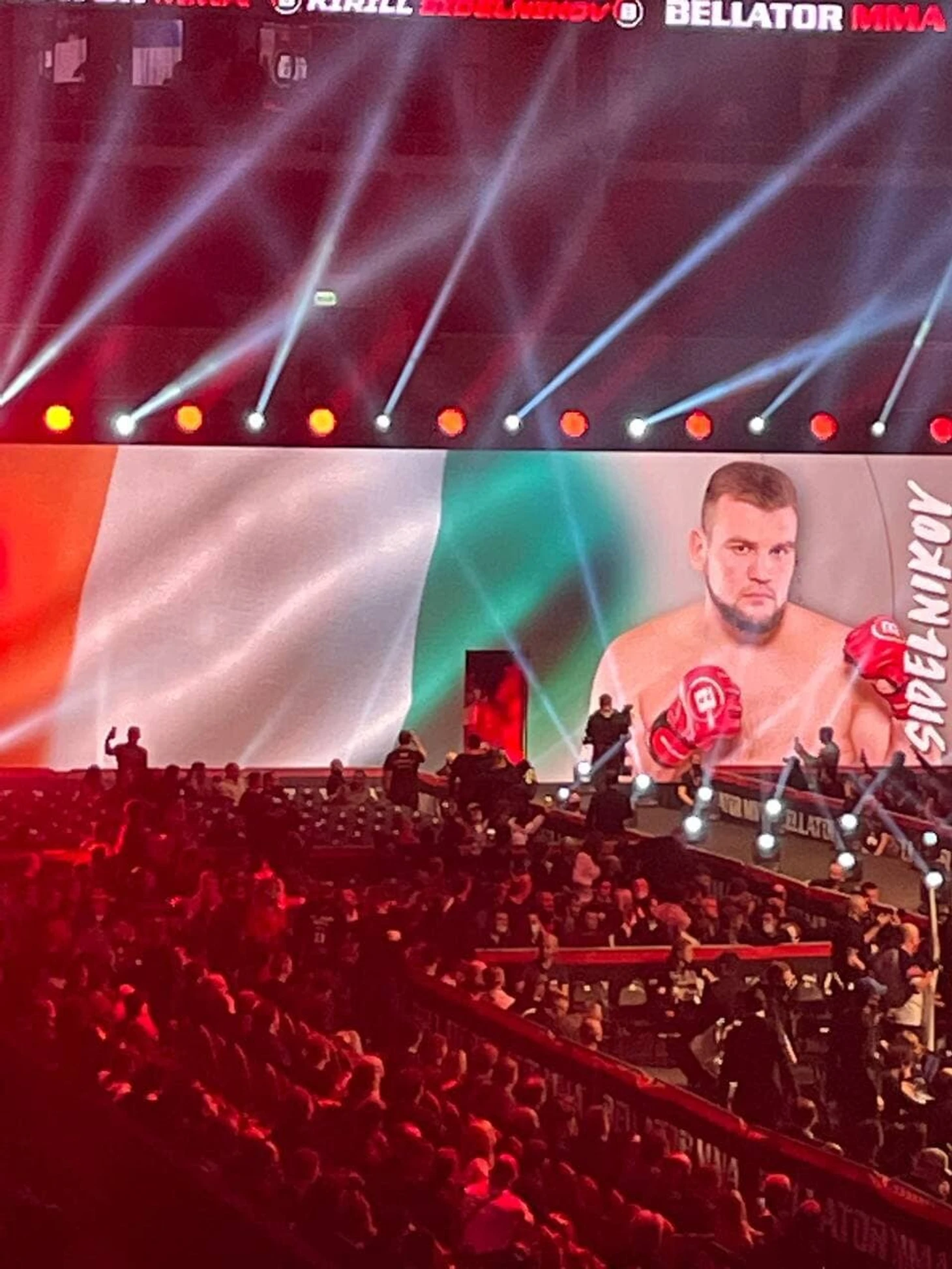 22:00 А вот и реакция Сидельникова на то, что его вывели под ирландским триколором (или флагом Кот-д’Ивуара):