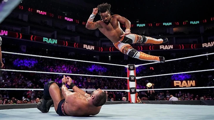 Плюс у Вудса есть свой стимул отомстить за поражение Кофи Кингстона, учитывая каким образом тот проиграл на прошлой неделе (несмотря на чистый финиш руками Махала, до этого момента Вир и Шенки попытались вмешаться в бой - и по сути им это удалось, несмотря на усилия Вудса остановить индусов).