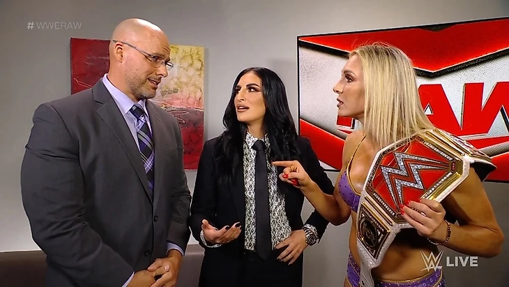 Позже за кулисами Шарлотт принялась гнать коней и прочую фигню на Адама Пирса с Соней Девилль - мол они виноваты в том, что и прощание для Флэр не было организовано, и что Шарлотт должна защищать свой титул от Бьянки Белэйр. Всё это полный отстой и чуть ли не заговор против лучшей в этой компании, как думала и сказала Шарлотт. Девилль же пояснила, что титульная защита Флэр против Бьянки - это справедливое назначение в качестве мэйн-ивента выпуска. Шарлотт, поняв что отмены матча она уже не добьётся, пригрозила что уйдёт с концами на синий бренд в статусе женской чемпионки RAW - и это никто уже никак не изменит (Как и сегмент в начале выпуска, так и здесь - всё ради раскрутки титульного матча и не более того, ибо Шарлотт в сюжете Белэйр-Бэнкс-Линч как пятое колесо. Вроде бы и большое событие, но вспоминая всю движуху до этого... уже готовишься к какой-либо подставе от букеров).