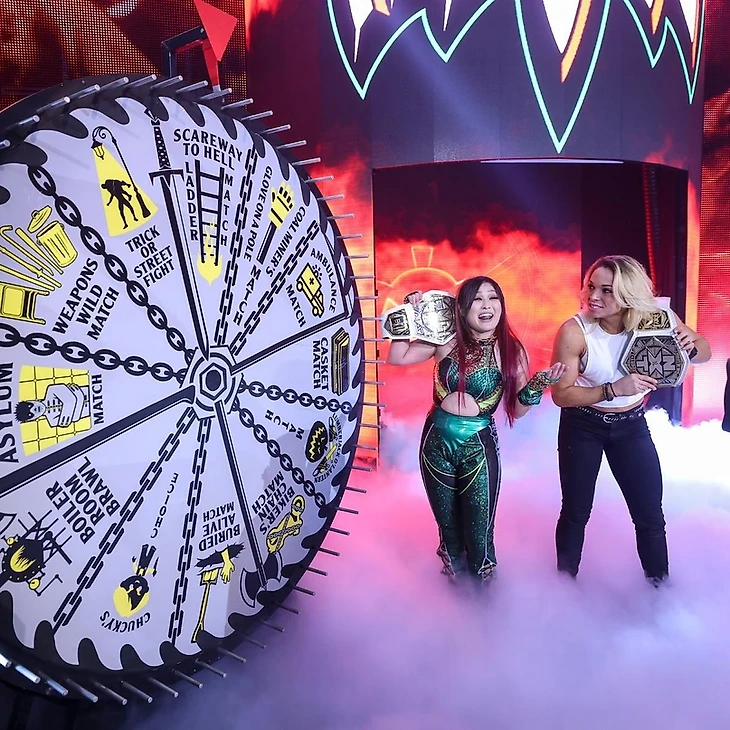 После матча Зои и Ио воспользовались своей возможностью. Официально — трёхсторонний матч на Halloween Havoc за командные титулы пройдёт по правилам лестничного матча Scareway to Hell.