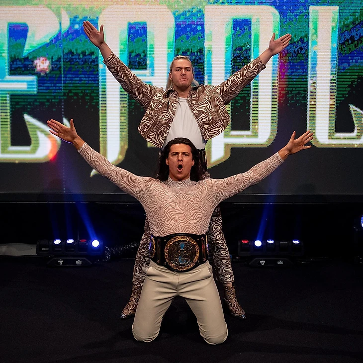 Бэйт же дает другу понять, что сегодня речь все-таки не о командных титулах, а о Кубке Наследия, поэтому... Дар, конечно, может думать Бог знает, о чем, а что находится во фляжке, припрятанной в кармане у Сэмюэлса, и представить невозможно, однако каждая встреча Бэйта и Ноама на ринге заканчивалась одним и тем же. И следующая их встреча закончится тем, что шотландец окажется на лопатках в центре ринга и по мере выхода из глубокой дремы начнет различать звуки... И тут Тай начинает импровизированно напевать свою музыкальную тему, в то время как Севен имитирует движения трубы.