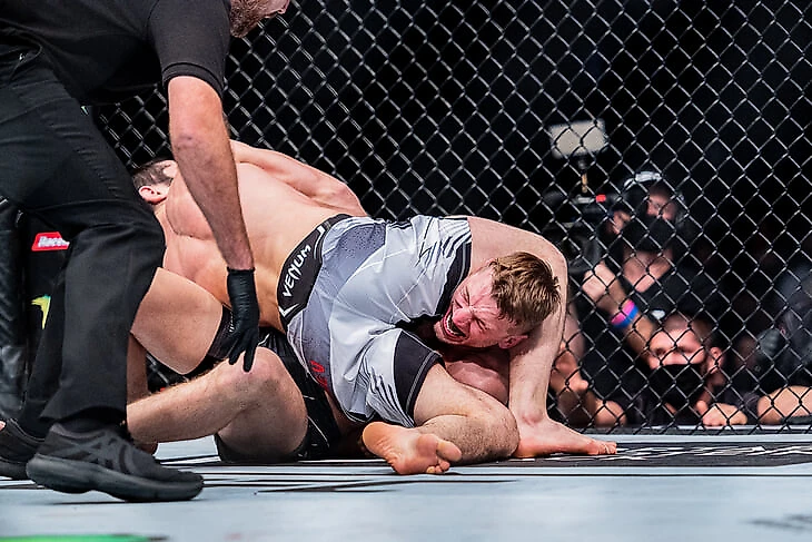 Но бой не получился конкурентным: Ислам не стал задерживаться на ногах и быстро перевел Хукера в партер. Дэн даже не успел проверить бокс дагестанца, ожидаемо провалившись в борьбе. Было заметно, что Хукер не справляется с давлением Махачева и вскоре попался на кимуру.