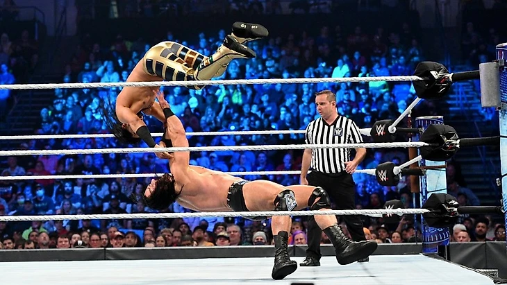 Очень короткий бой, который, тем не менее, меня даже порадовал, рестлеры даже попытались что-то напоминающее историю рассказать о противостоянии силы и скорости. Али и МакИнтайр могли бы подарить нам бэнгер в любой день недели, если бы выступали не на шоу WWE. Однако, Дрю перешел на SmackDown, и WWE по старой-доброй традиции «скармливают» ему относительно слабых соперников, ибо нужно же человеку придать momentum и показать его мощным. Мы же забыли, что Дрю — это чемпион WWE, победитель Королевской Битвы и вот это все, нам обязательно нужно, чтобы его reintroduce нам. С Али же все также не знают, что делать, и видимо эта претензия его после боя должна в каком-то плане задать вектор… но я вообще не уверен, что букеры не забьют на это дело уже через неделю.