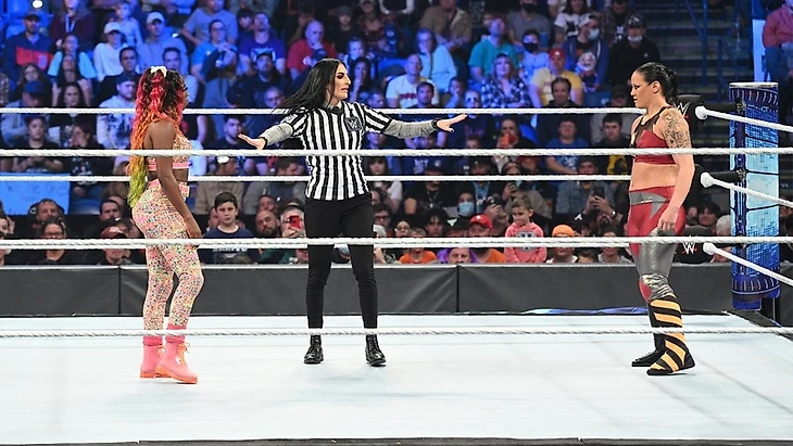 Матч не мог начаться, так как на ринге не было рефери. И тут появилась Соня. Она сказала, что выявилась проблема. Судья, который должен был реферить матч Шэйны и Наоми получил травму на прошлой неделе, когда Брок уничтожал все и всех. Поэтому Девилл пришлось найти настоящего профессионала, который будет судить этот бой честно. И, конечно же, она не нашла никого более подходящего для этого, чем себя любимую. Она надела рубашку судьи, которая чисто случайно оказалась ей по размеру. Гонг прозвенел, Наоми отбилась от двух попыток Kirifuda Clutch, как и от болевого на ногу. Обмен ударами привел к снэп харриканране от Тринити, прошла еще пара атак, хай кик с апрона, и спрингборд атака не получилась, ибо Наоми подскользнулась на канате, но провела все-таки еще один хай кик. Удержание Соня не отсчитала, а когда Шэйна перевела в сворачивание, то Девилл очень быстро его отсчитала до 3. Бэзлер победила, Наоми, естественно, стала предъявлять претензии Девилл, за что Шэйна «усыпила» ее Клатчем. End Scene.