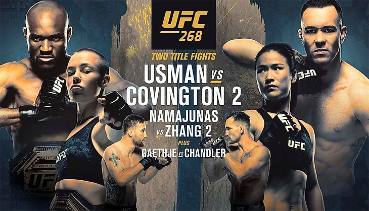 Главным событием турнира станет долгожданный титульный реванш в полусреднем весе между Камару Усманом и Колби Ковингтоном. В со-главном бою встретятся действующая чемпионка дивизиона Роуз Намаюнас и бывшая обладательница чемпионского пояса Вейли Чжан.