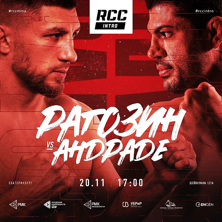 Михаил Рагозин (17-5) разделит клетку с Вискарди Андраде (22-9) в главном событии турнира RCC Intro 18. Вечер единоборств состоится 20 ноября в Екатеринбурге на арене Академии единоборств РМК.