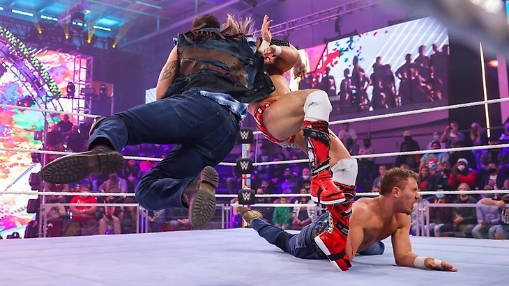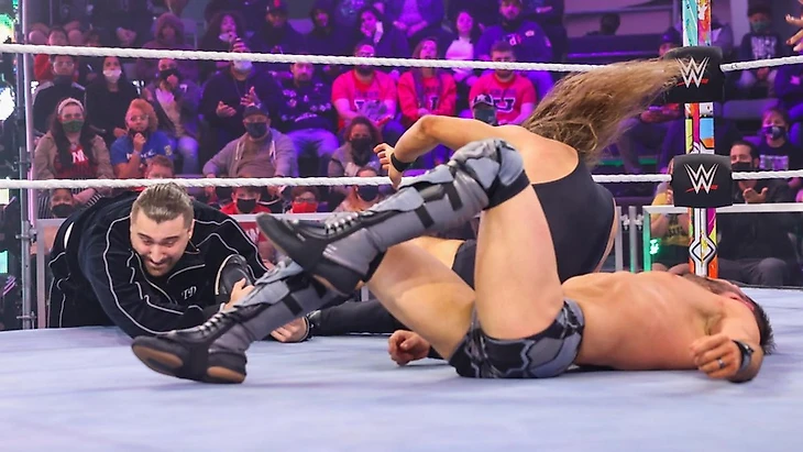 Это было не про рестлинг, да и слишком коротко, чтобы получить мало-мальски человеческую оценку. Нам показали полуматч-полусегмент, который рассказывает историю о том, как Инди переживает за своего любимого. В контексте их истории это окей. Но не могу сказать, что оно положительно сказывается на качестве шоу. За Катанзаро и Картер же обидно, я уже не помню, сколько мы времени говорим про их потенциал, и как индивидуалок, и как команды, а они получают матчи на 3 с половиной минуты, в которых могут выиграть, только если с одной из 2 соперниц будет не все слава Богу…