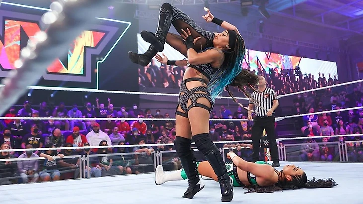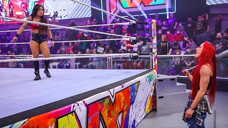 Diamond Mine в полном составе присутствовали на рингсайде. Леон ушла от палы атак, но получила вариацию чоп блока и бросок, после чего Найл поотжималась на сопернице. Леон на какое-то время перехватила инициативу в чейн-рестлинге, но стала жертвой жесткого лэриэта, после чего Айви снова стала доминировать. Долгий хэд сиззорс, и соперница попыталась вернуться с помощью пары сворачиваний, но в конечном итоге попала в вариацию дрэгон слипера, которого хватило для победы Найл.