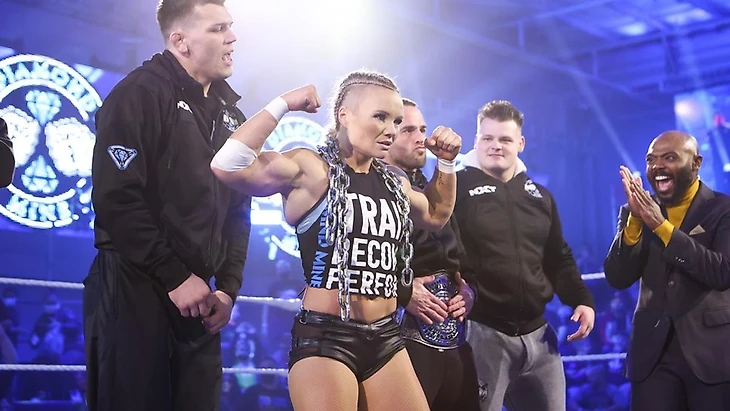 Во время выхода Найта со спины его атаковал Грэйсон Уоллер. И вместе они ушли драться за кулисы, окруженные толпой судей. Джо уселся на стул в ринге и извинился перед публикой за то, что матча, очевидно, не будет. А жаль, ведь он так хотел научить Найта спокойно справляться с гневом. Этого не случилось, поэтому Гейси воспользуется освободившимся временем, чтобы обсудить как можно исправить… к рингу вышли Diamond Mine. Малколм Бивенс вышел, чтобы сказать, что раз поединка нам не видать, а Джо на прошлой неделе отнял время у Diamond Mine, группировка под началом Малколма решила ответить ему тем же. Все гудят по поводу Айви Найл, потому что ее сегодня ожидает матч. Поэтому Джо лучше освободить ринг для Diamond Mine. Джо ответил, что уважает право Айви проводить матч, и шоу должно продолжаться. Но к Родерику Стронгу у Гейси уважения нет. Ведь одно только имя Родди является примером токсичной маскулинности.