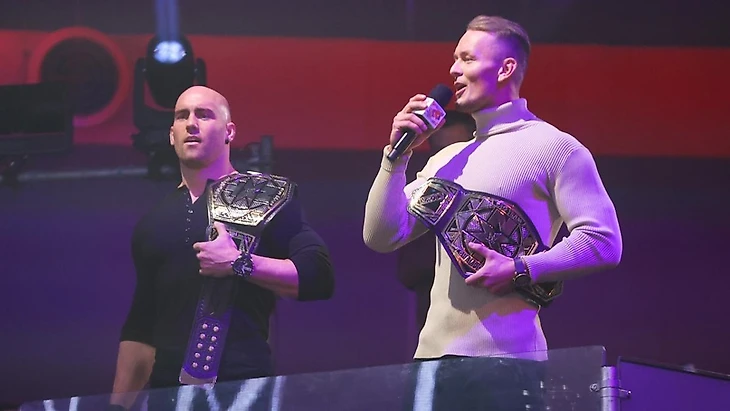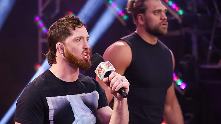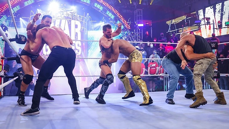 Что касается матча, то он был хорош. Очень даже. Да, довольно коротко, но в нем даже был вайб «того самого» NXT. Однако, по-другому и быть не могло: Гаргано и Данн плохой матч показать не в состоянии, а Кармелло из тех парней, который не испортит картины, если дать ему хорошего оппонента. Более того, тут он молодец, потому что в этом трехстроннике был очень высокий темп, работали не по принципу «2 in 1 out», а все втроем, и он выдержал все это, хотя не думаю, что у него много опыта подобного рода поединков. В общем, очень хороший мэйн-ивент телевизионного выпуска с логичной титульной защитой. Драка после матча с назначением, грубо говоря, мужского WarGames — это пусть и банально, но смотрелось в смысле технического исполнения нормально. Если очень сильно не задумываться, то прикольно. А вот если задуматься… Смотрите какой момент. Этот матч нам будут продавать как противостояние «старой школы против новой школы». И это окей. Но не то, чтобы к этой самой войне между поколениями до этого были серьезные предпосылки. Поэтому предполагаемая, назову это так, компания по продвижению этого матча в медиа будет выглядеть, я чувствую, несколько притянуто за уши. И это мы не будем углубляться в рассуждения, типа, зачем вообще Данну, Найту, Томмасо и Джонни объединяться, по какому принципу команда молодых вдруг решили, что они вместе будут. То есть, в смысле чисто технически мужской WarGames матч вырос из массовой стычки людей, которые до выкрика Брейккера «WARGAMES!» вообще были слабо связаны. И это вызывает двойственные чувства.