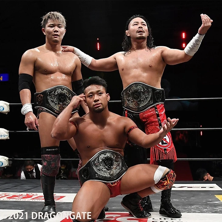 После этого новоиспечённые трио-чемпионы полтора месяца проходили без больших и серьёзных вызовов со стороны остального ростера... пока на это не отважились HIGH-END во главе с Дрэгоном Кидом. Правда по пути к этому вызову Кёйске Окуда словил травму и его заменил нестареющий телом и душой Кагетора.