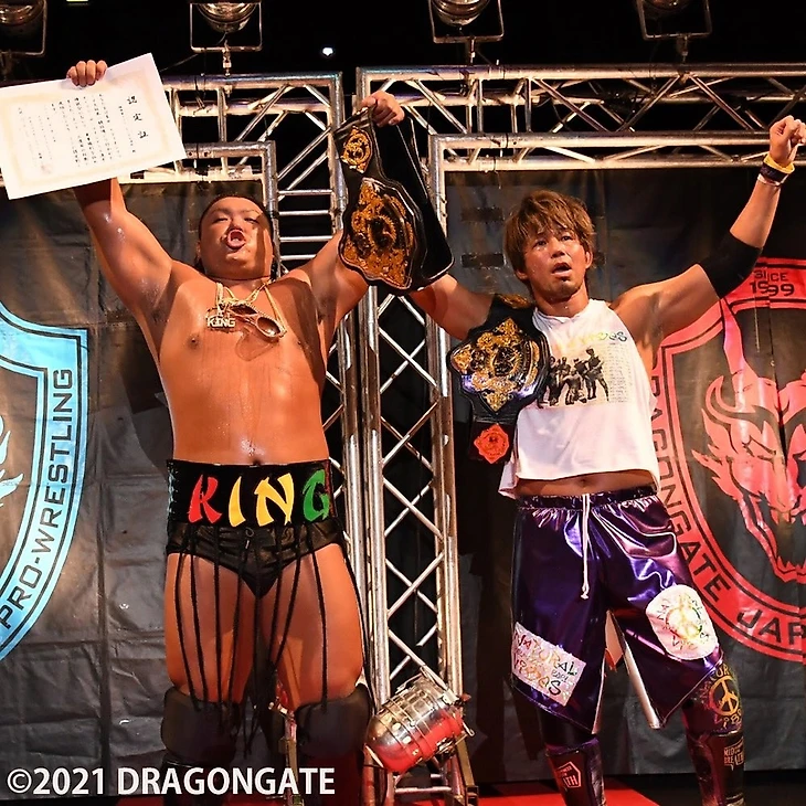 6) Natural Vibes (Сусуму Йокоска и Кинг Шимизу) против Kongo (Кено и Хао) - титульный поединок за командные чемпионства Open the Twin Gate.