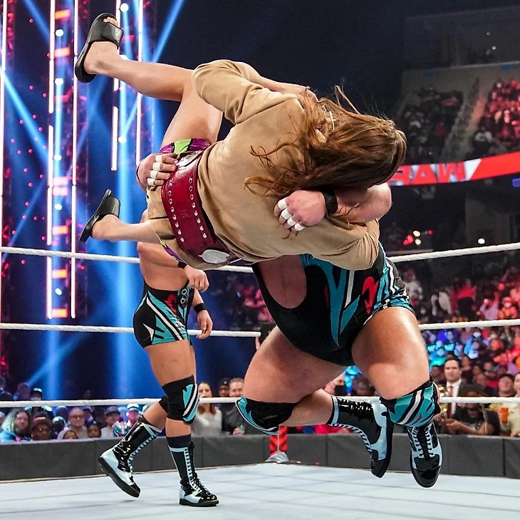 Победитель: Бьянка Белэйр по отсчёту (Белэйр уже была в миле от победы, тем более по своему же финишеру. Но Нивен сопротивлялась и сорвалась с плеч Бьянки... попутно покинув матч).