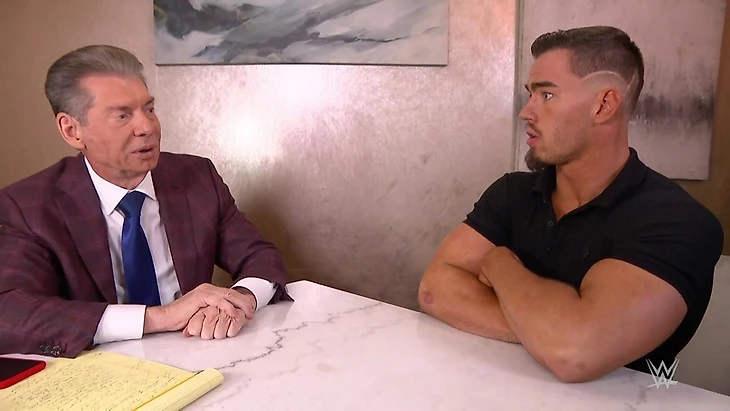 Также с матчем связано кое-что ещё: до матча состоялся сегмент между Винсом МакМэном и Остином Тиори на предмет их прошлых разговоров на прошлой недели. И темой этого разговора стал вопрос о неожиданностях - Винс пытался учить Остина быть готовым к этим самым неожиданностям и одновременно уметь удивлять всех вокруг себя. Местами сегмент отдавал классическим гачимучи (да, я лично увидел парочку таких вот моментов, даже если со мною не согласятся), но в целом Винс пытался закреплять в Остине целеустремлённость. Также босс WWE мог дать матч Остину, чего так и не произошло - и по той же причине: чтобы Остин попытался бы произвести впечатление. Не только на Винса, но и на всех остальных.
