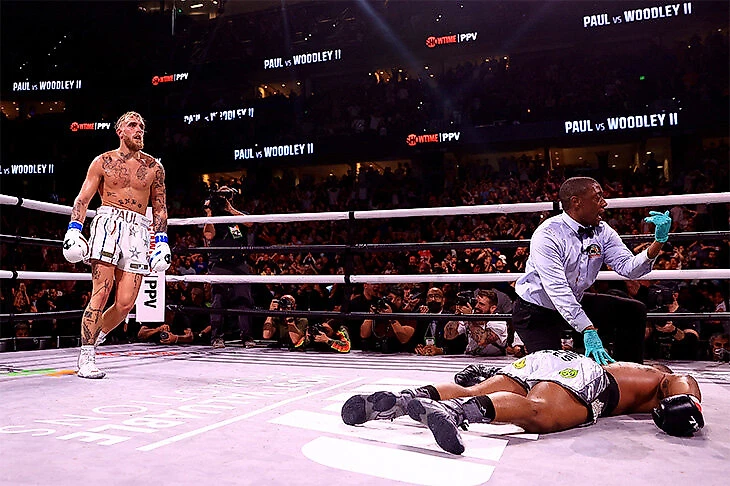 Джейк Пол выключил свет Тайрону Вудли с одного удара. Онлайн реванша блогера и бывшего чемпиона UFC