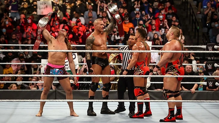 Начали бой Гейбл и Риддл. После сессии чейн-рестлинга, в котормо никто особо не захватил контроль, Мэтт поймал соперника мид-киком, провел broton, РК с апрона и слингшот floatin' bro перед уходом на рекламу. Вернувшись, мы увидели, что Риддл отбился от Гейбла, поймал его в сворачивание до 2, пока нам показывали, что во время рекламной паузы Чэд перехватил контроль с помощью dragon screw с канатов. Гейбл провел еще один dragon screw, сменился с Отисом и претенденты провели командную работу. Отбившись в углу оппонентов и проведя floatin' bro с третьего каната, «Бро» передал «горячий» тэг Ортону, и тот принялся уничтожать Гейбла. Снэп пауэрслэм, но Отис выиграл напарнику немного времени, и тот избежал «Винтажного Ортона», однако восхождение на третий канат Рэнди прервал. Суперплекс от «Гадюки», но подготовку к RKO сорвал Отис, потянув Ортона за ногу. Потом он атаковал Риддла, чем отвлек Рэнди, но чемпион столкнул претендентов в углу… где они смениились, и Чэд, избежав RKO, направил Ортона прямо под победный пауэрслэм Отиса. Alpha Academy — новые командные чемпионы RAW.