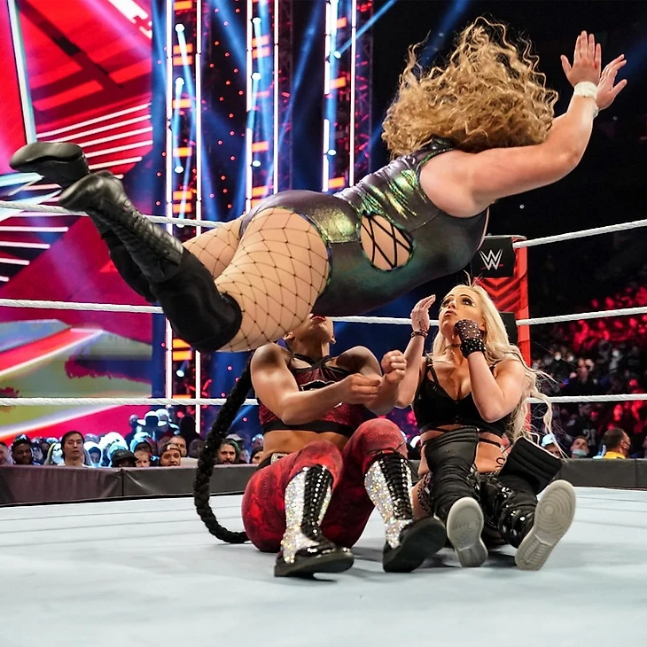 Бьянка Белэйр против Дудроп против Лив Морган — матч за претендентство на женское чемпионство RAW.
