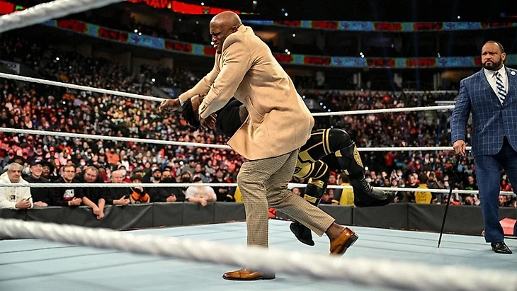 «Вот об этом и речь» — подытожил Леснар. Эта шутка уже немного напрягла Лэшли. Брок продолжил. Победить «Зверя» невозможно. И это еще более невозможно, если ты пародия на Брока Леснара *micdrop*. Хейман и Леснар покинули ринг, а на Лэшли напали Седрик и Бенджамин. Естественно, от обоих он отбился, и познакомил головы обоих со стойкой ринга.
