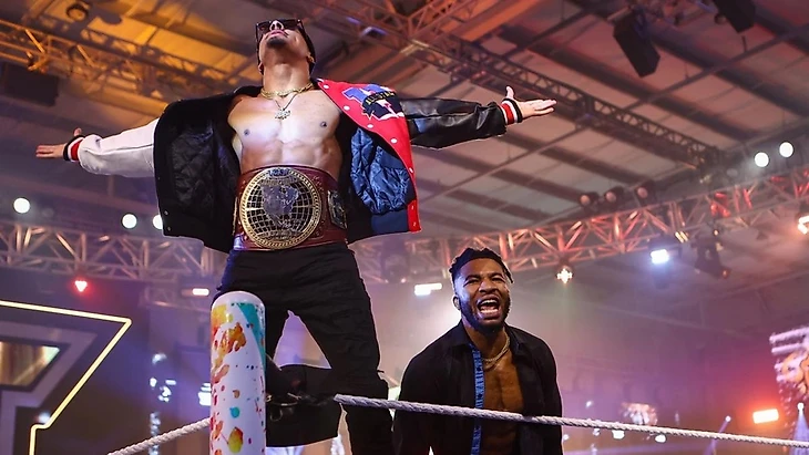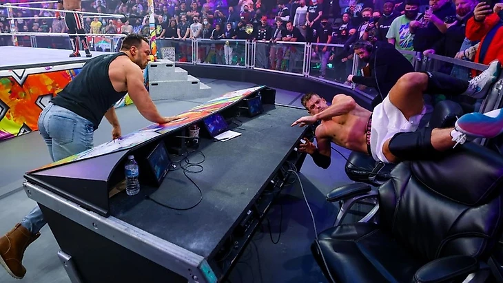В начале шоу нам показали хайлайты матча Брона Брейккера и Томмасо Чампы, в котором первый стал новым чемпионом NXT.