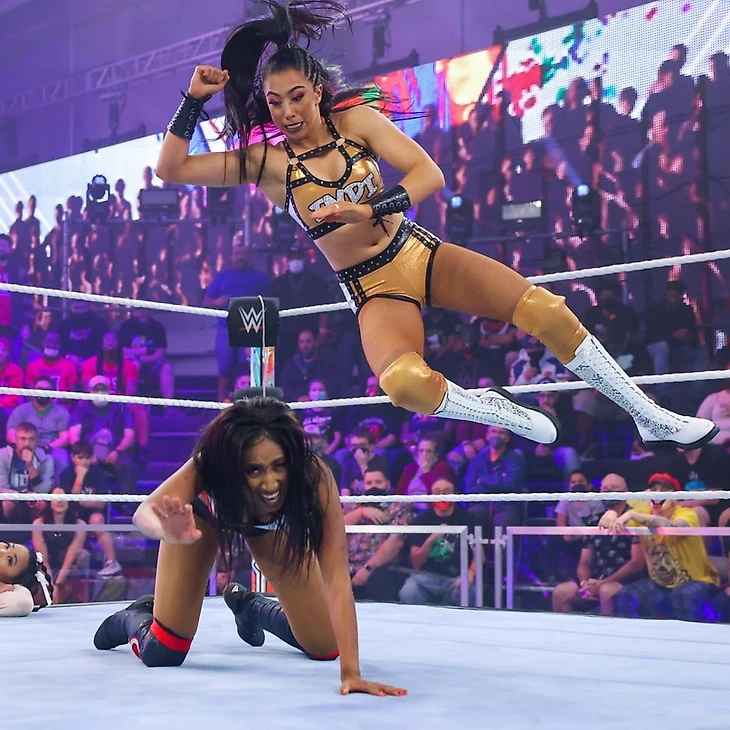 А далее пройдёт женский командный матч 3-на-3 между командами Венди Чу, Персии Пиротты и Инди Хартуэлл и Кэйден Картер, Кейси Катанзаро и Амари Миллер.