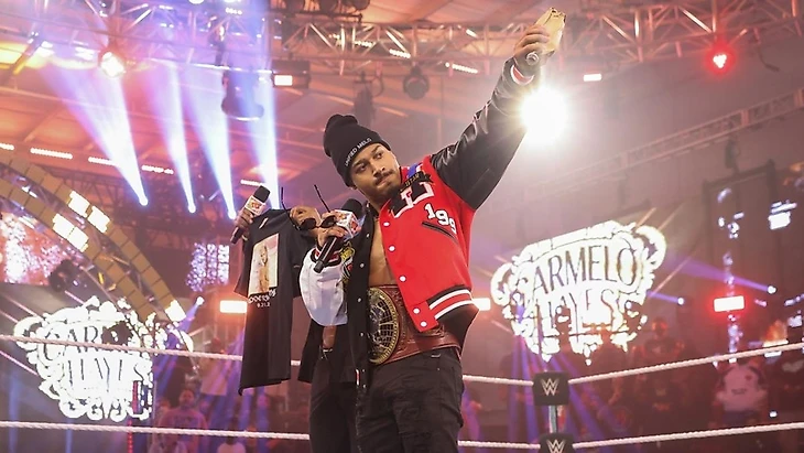 Кармело выходит на ринг. Сперва Трик Уильямс восхваляет своего друга, после чего Хейс заявляет, что на прошлой неделе он сразился с самым серьёзным своим оппонентом, поэтому предлагает почтить рейн Родерика Стронга минутой молчания. Но быстро забивает на эту идею и решает праздновать. Он продолжает характеризовать себя как лучшего на NXT, ведь Мело создаёт исторические моменты, имеет больше достижений, чем матчей в компании. И мы можем называть его как угодно, но он всё равно будет настоящим главным чемпионом. После чего он продолжает праздновать, но его перебивает выход ЭйДжея Стайлза.