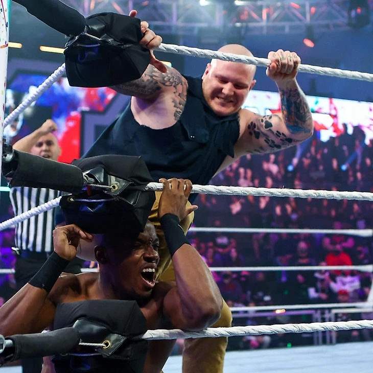 3) Малик Блейд и Эдрис Энофе победили Джо Гейси и Харланда по дисквалификации после того, как Харланд принялся избивать Малика в углу ринга и не обращал внимания на отсчёт рефери (3:14).