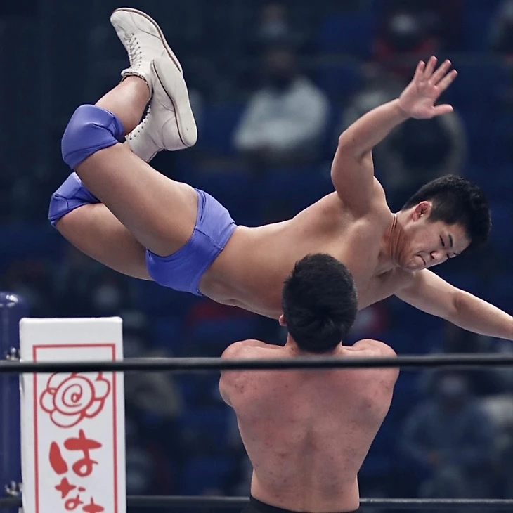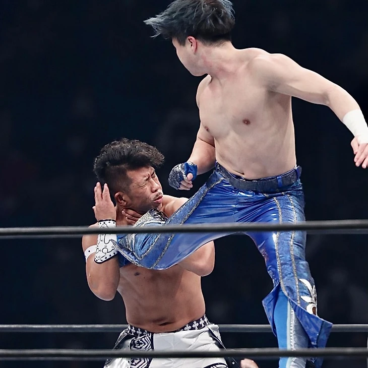 Никогда еще молодых львов не было так просто различить. Фуджита (NJPW) выступал в черных трусах, а Яно (NOAH) — в синих. У парней был лимит в 10 минут, и они использовали все время до секунды, расписав ничью. Яно запомнился отличным кроссбади с угла ринга, что в исполнении молодых львов в NJPW по крайней мере не часто увидишь. Но, надо признать, и опыта у Ясутаки больше почти на год, чем у его оппонента. Тем не менее, в концовке ближе к победе был именно Косей, мучивший недруга в Бостонском крабе, что Яно мужественно вытерпел. Отличный матч молодых львов. Рад за обоих, что они получили шанс показать себя на большой сцене, пусть и на пре-шоу.