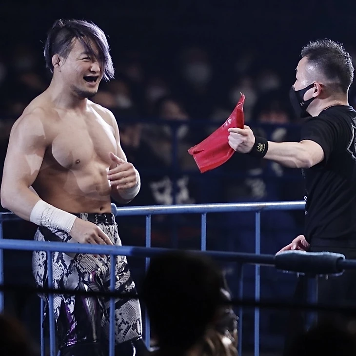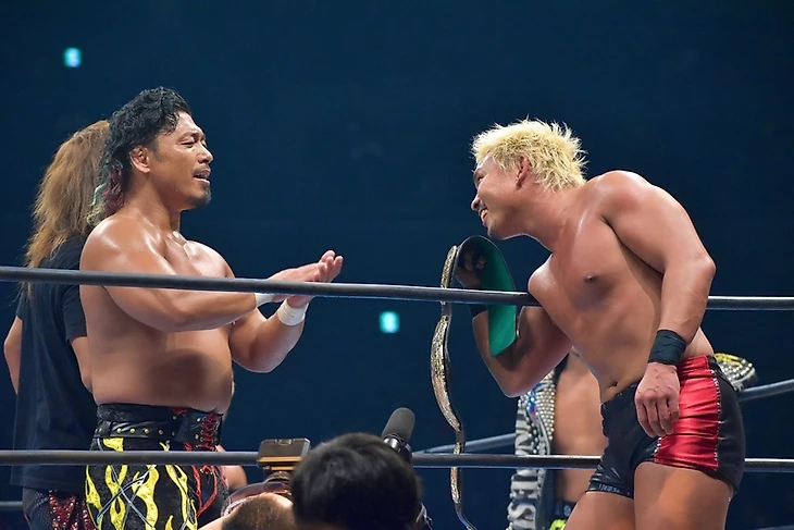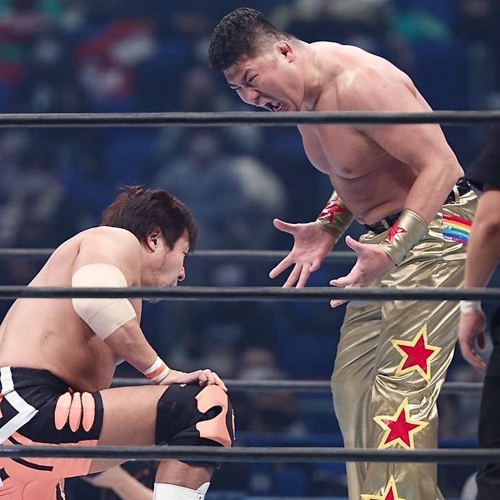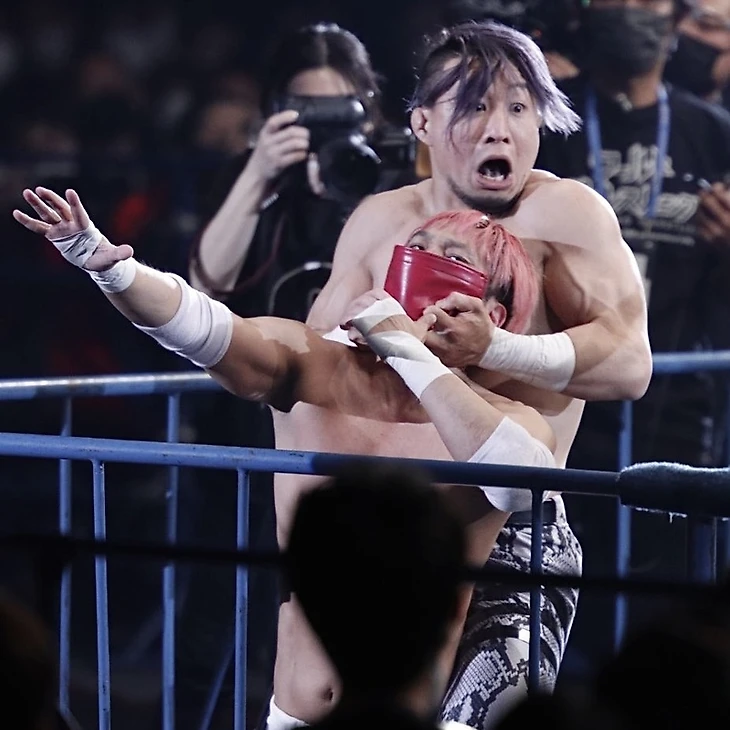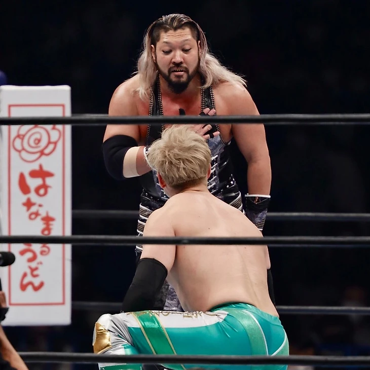 Изначально в связке с Sugiura-Gun должен был выставить КЕНТА, но не смог, ибо получил целую кучу травм в матче с Танахаши. В итоге таинственным напарником гостей из NOAH был выбран Тору Яно. Во-первых, потому что он собутыльник и товарищ Казуши Сакурабы, а во-вторых, потому что у него на втором дне начался фьюд с Сузуки. Самым интересным было то, как будут взаимодействовать Минору и Такаши Сугиура, учитывая то, что он был членом Suzuki-Gun в 2016 году, но в конечном итоге «предал» Сузуки. В общем, ожидания от матча были высоки и, по большей части, касались Сугиуры и Сузуки. И, надо сказать, что эти самые ожидания были оправданы for the most part, ибо Минору и Такаши устроили друг с другом настоящую войну и в ринге, и за его пределами. Стоит отметить и интересный размен между Сакурабой и Таичи на старте. Suzuki-Gun показали даже какую-то командную работу. В концовке ТАКА Мичиноку, который был «легальным» участником боя, стал испытывать проблемы, и товарищи поспешили ему на помощь, но NOAHвцы справились с оппонентами, причем Минору нейтрализовал Тору Яно, позволив Сугиуре провести коронный Olympic Yosen Slam ТАКЕ, который принес Sugiura-Gun победу. Попинав чуть-чуть Яно, Минору устроил битву взглядов с Такаши напоследок. Матч длился 9 с половиной минут, но, довольно внезапно, стал одним из самых любимых для меня на всем шоу, ибо противостояние Сузуки и Сугиуры — это золото. Да и, в целом, в своей категории это был прекрасный командник. Нам дали тизер еще одного потенциального interpromotional «бэнгера» между представителями NJPW и NOAH, и я жду его еще больше, чем одиночную встречу Ишии и Инамуры.