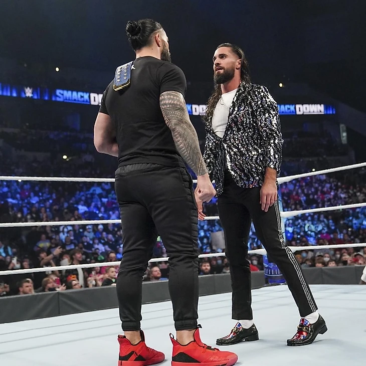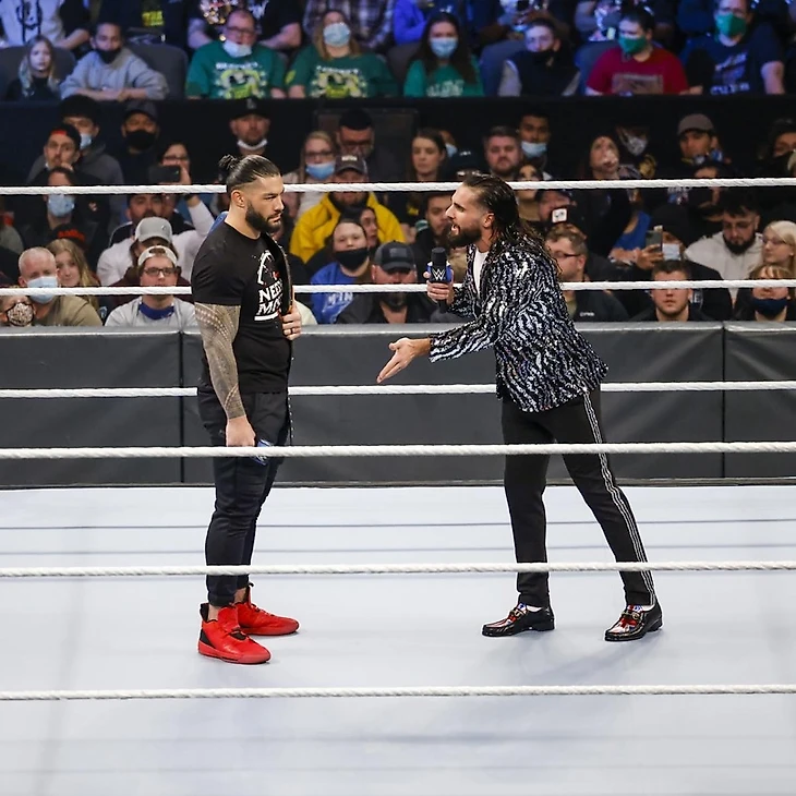 Оба наконец-то встретились на глазах у зрителей на ринге. Разговор начал Рейнс, ожидая от фанатов из Омахи признания своего "Вождя", а затем уже дал слово Сету. Последний попытался развести чемпиона на стук кулаками, как в старые-добрые времена. Роман отказался. Сет же удивился реакции людей на Рейнса, но подчеркнул - если они такие тихие из-за Романа, значит они готовы поддерживать Сета. Хотя самому Роллинсу захотелось снова увидеть то самое лицо Романа, которое было неделю назад и признать это самое выражение. Да и факт того, что в матчах 1 на 1 Роллинс так и остался по-настоящему историческим во всех отношениях.