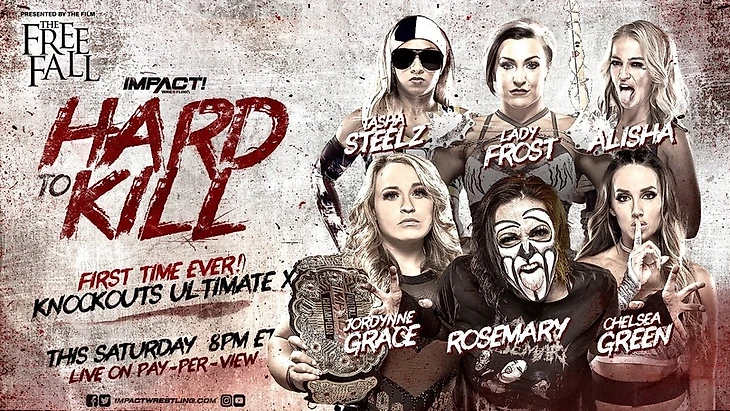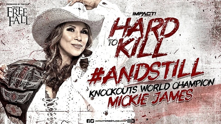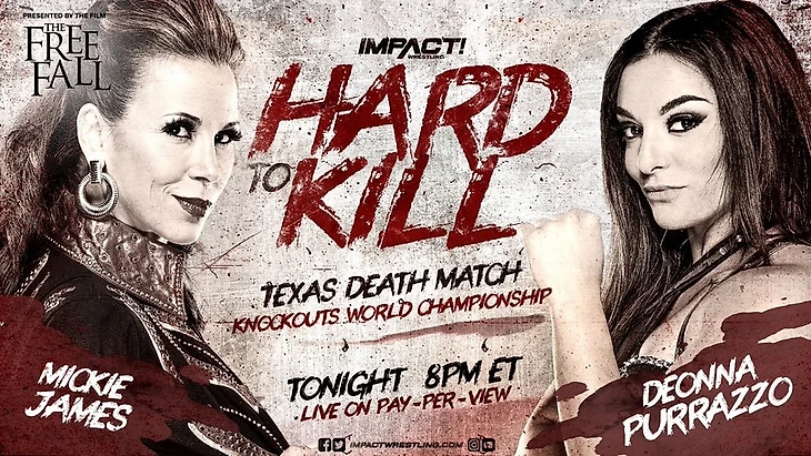 Также во время всех этих сюжетных движух ещё в декабре прошлого года случилось несколько моментов: матч изначально был по обычным правилам, но на фоне первого многостороннего матча по правилам Ultimate X реванш Джеймс-Пурраццо получил условия техасского матча смерти. Затем на Final Battle Пурраццо в качестве женской чемпионки ААА совершила возвращение в ROH и после боя Рок-Си против Уиллоу за женское мировое чемпионство ROH бросила особый вызов Рок-Си: как только Пурраццо вернёт себе женское мировое Нокаут-чемпионство IMPACT, она и Рок-Си проведут большой бой за все титулы. Рок-Си тогда без сомнений и вопросов согласилась на данные условия. А буквально за сутки до Hard To Kill случилось нечто невероятное - WWE анонсировали участие Микки Джеймс в женской Королевской Битве. И что самое тут не менее удивительное - во время этого анонса во всеуслышание была объявлен статус Джеймс как женской мировой Нокаут-чемпионки IMPACT Wrestling. Даже Пэт МакАфи это повторил во время комментирования последнего еженедельного выпуска Friday Night Smackdown.