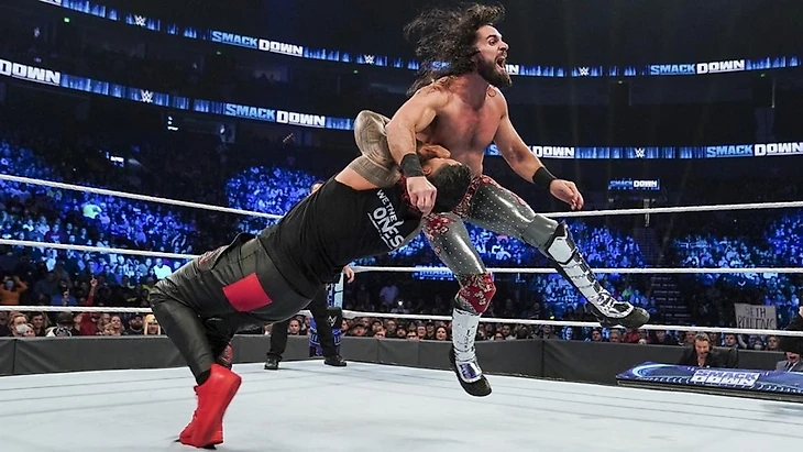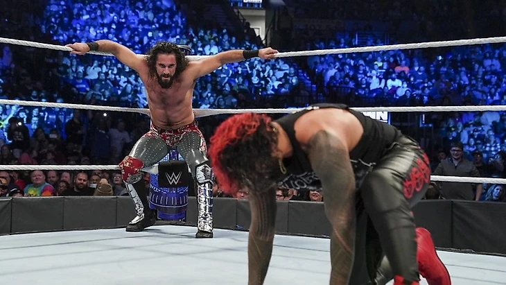 Радости Рейнса за самого себя не было предела, но это дело подпортил... Сет "Freakin" Роллинс своим появлением на рампе. Ибо соваться в ринг 1 против 3 так себе, особенно после прошлой недели и инцидента несколько дней назад на красном бренде. Сет продолжил, что никакая вечеринка не может обойтись без его присутствия и стоит быть готовым к вечеринке по случая скорого завершения этого тайтл-рейна. Роллинс сразу же переключился на его братьев, которые по его мнению не менее достойны празднования своего достижения как самые длительные командные чемпионы синего бренда (что кстати является правдой - ибо последний таковой рекорд принадлежал тем же Усо, но в нынешнем тайтл-рейне братья обогнали самих себя на 5-6 дней). Тем более что большая часть успеха Рейнса - это именно наличие его кузенов рядом с ним как группировки The Bloodline. Отчего у Сета проскользнула параллель с "ЩИТ", когда он и Джон Моксли (причём тут Роллинс назвал Джона "Мокс", хотя из-за слитности произношения речи Сета это заметить сразу не очень просто) также были краеугольным камнем успеха группировки, а не только кто-то один из них и тем более Рейнс.
