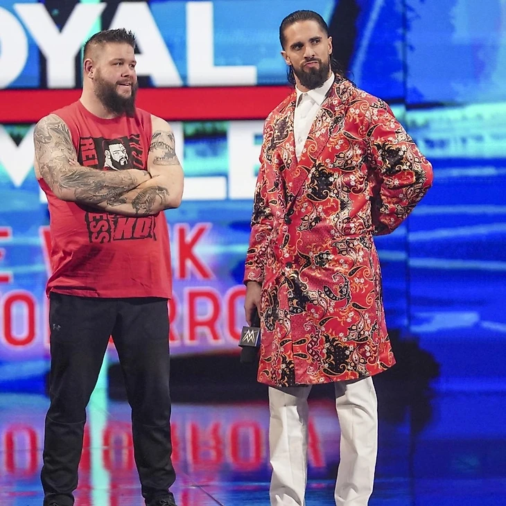 Роллинс отметил правоту слов Джея, ибо он сейчсам мало кому нравится как личность. И тут же заиграла музыка Кевина Оуэнса, да и он сам объявился на рампе весь такой счастливый и прикрикивая "Он мне нравится". Роман тут же оживился и требовал прекратить эту веселуху, ибо он тут главный и ему решать как и что делать. Чемпион формально дал именно своё согласие на условия Сета, но только при одном условии от самого себя: если же он и КО проиграют Усо сегодня, то Сет лишится своего тайтл-шота и места в карде Royal Rumble, а сам Роман будет себе отдыхать вплоть до WrestleMania 38. Тут уже сам Сет стал сомневаться в правильности своего решения, но Кевин уговорил его принять это условие - и "Архитектор" уже без доли сомнений принял такое предложение от Рейнса. Всё согласовано и все стороны, видимо, были довольны раскладами.