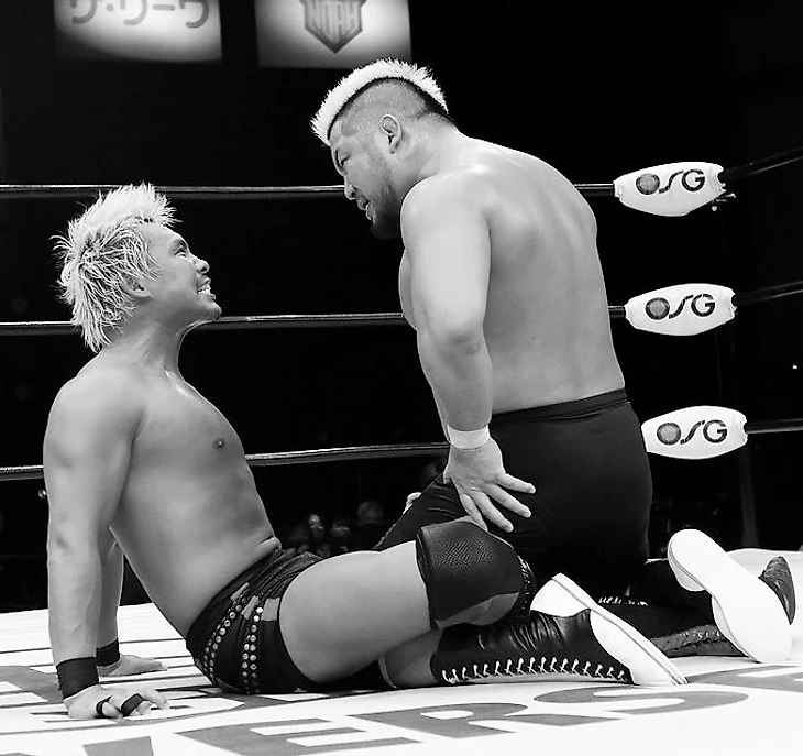 Ведь как я уже рассказывал в обзорах на ивенты от NOAH за прошлый год - у Накаджимы и Китамии в своё время было общее прошлое в лице длительной работы в промоушене Diamond Ring под руководством Кенске Сасаки. Они, вместе с Кенто Мияхарой и самим Сасаки, представляли промоушен во многих матчах NOAH и не только у них. Но после окончания карьеры Сасаки и закрытия промоушена, Китамия и Накаджима вместе попали в NOAH, а Мияхара ушёл в AJPW. С тех пор Маса и Катсухико работали в полном метре, продвигаясь на вершины ростера. Им приходилось то объединятся, то распадаться достаточно часто из-за разных скоростей и подходов развития их карьерных амбиций.