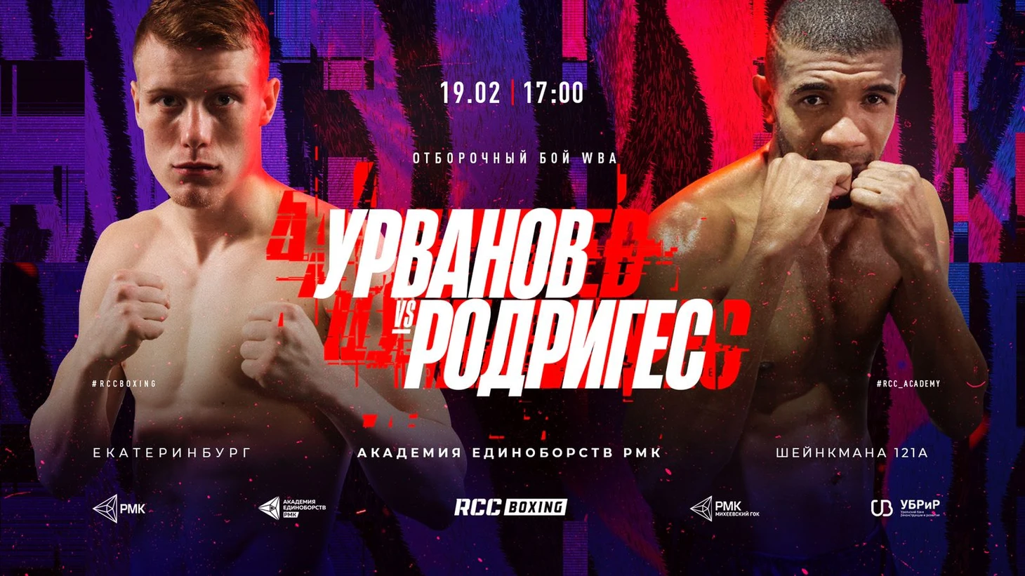 Российский боксер Марк Урванов (20-2-1, 10 КО) и венесуэлец Анхель Родригес (19-1, 10 КО) проведут отборочный бой по линии WBA (до 59 кг) и определят обязательного претендента на бой за титул чемпиона мира. Поединок состоится 19 февраля и станет со-главным событием Вечера бокса под эгидой RCC Boxing Promotions, который пройдет на арене Академии единоборств РМК в Екатеринбурге.