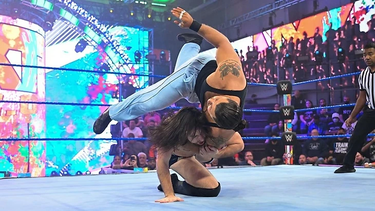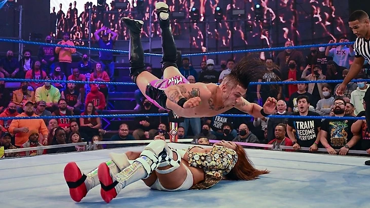 Но тут уже вмешался случай из-за отдельных разборок Кей Ли Рэй и Мэнди Роуз, которые длятся уже целый месяц, хотя подводки начались 2 месяца назад, уже под конец прошлого года. Но тогда Роуз отдельно разбиралась с Корой Джейд и Ракель Гонзалес, успев и главный женский титул завоевать, и защитить его в большой трёхстороннике на New Year Evil в начале января. Это освободило дорогу для бывшей и самой длительной женской чемпионки NXT UK, а Роуз пыталась сразу устранить новую проблему. Только вот КЛР с битой - это страшная вещь и в этом Мэнди пришлось убедиться неделю назад, когда шотландка едва не добралась до чемпионки, сорвав горячую фотосессию Мэнди.