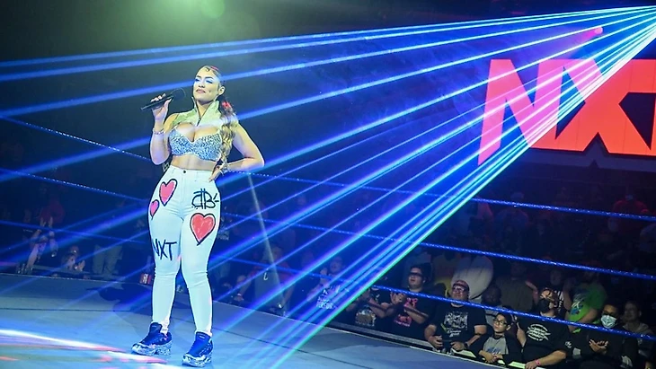Прямо перед матчем состоялось то самое выступление певицы Олли Джей (в миру Оливия Джонсон) с её хитом Make Em Fall. Эта песня кстати является одной из ключевых тем NXT 2.0. А представили её Кармело Хэйс и Трик Уильямс, который кстати и привезли Олли Джей на арену для выступления.