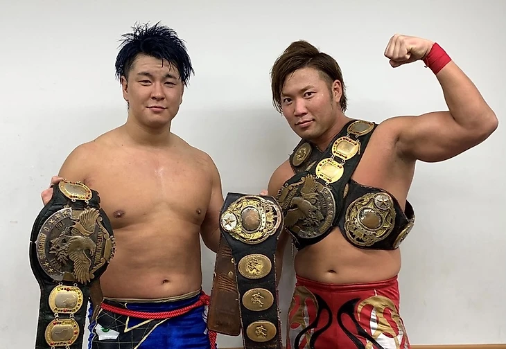 Моё наблюдение за Юмой Аояги проходило в довольно сложное время для всего мирового рестлинга. До 2020 года я, конечно, ни сном, ни духом не понимал специфики каждого промоушена и их топ-звёзд. И за последние 2 года я более-менее пытался освоиться с тем, где место для старшего из братьев Аояги. С учётом его относительно небольшого опыта (14 декабря его карьере исполнилось 7 лет), Юма закрепился как топ-мидкардер ростера, постоянно фигурируя в больших событиях и как командный игрок независимого пошива, и как представитель разраставшейся группировки NEXTREAM. При этом он довольно незаметно прошёл через рост из молодого льва-полутяжа в тяжеловесы, постоянно работая и получая матчи против статусных оппонентов и ветеранов того периода - как в командах, так и против них (Джун Акияма, Сувама, Котаро Сузуки, Йошинобу Канемару, Кенто Мияхара, Го Шиозаки, Хикару Сато, Татсухико Такаива, Дайске Секимото, Шигехиро Ириэ, Ультимо Дрэгон, Дори Фанк-мл., Масанобу Фучи, татсуми Фуджинами, Кейджи Муто - и это далеко не полный список). Плюс, сами события бывали не менее статусными: участие в турнирах Junior Battle Of Glory 2017 и Junior Tag Battle Of Glory 2016, Super J Cup 2016 от NJPW, Royal Road (в 2016 и в 2018-2020 - только на стадии 1-го раунда) Real World Tag League (7 турниров подряд с 2015 года, 2 победы за 2020 и 2021 гг.) и Champion Carnival (3 турнира подряд c 2019 по 2021 гг. - первые два раза Юма был в числе аутсайдеров, в этом же году он был в числе фаворитов). Также нельзя пройти мимо пяти сольных тайтл-шотов - бой за мировое чемпионство в полутяжёлом весе, бой за телевизионное чемпионство GAORA TV и три схватки за чемпионство Тройной Короны в тяжёлом весе, две из которых прошли в этом году.