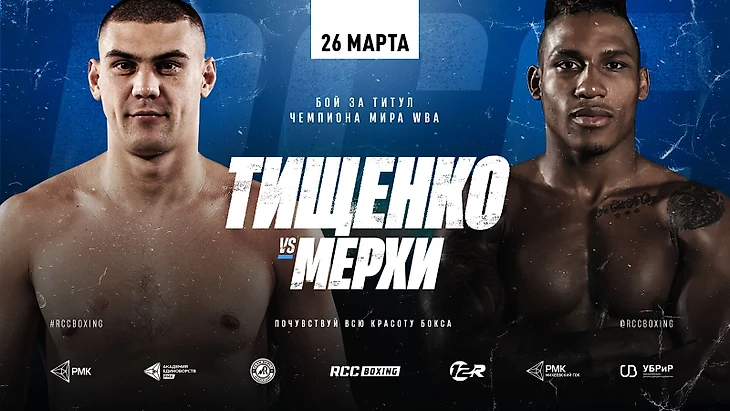 Олимпийский чемпион Евгений Тищенко (9-1, 6 КО) и чемпион WBA в первом тяжелом весе (до 90,7 кг) Рияд Мерхи (30-1, 25 КО) проведут титульный бой в Екатеринбурге. Поединок возглавит турнир RCC Boxing Promotions, который запланирован на 26 марта.
