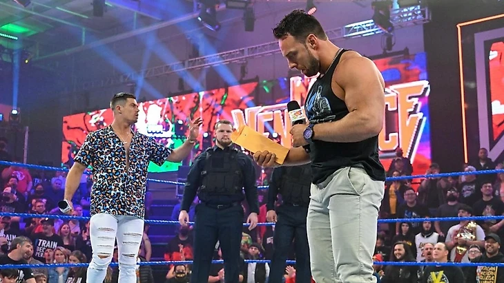 — На очереди была встреча между ЭлЭй Найтом и Грейсоном Уоллером в присутствии «органов правопорядка» касательно вопроса ареста Найта за нарушение судебного приказа о неприкосновенности Уоллера. Грейсон пытался сыграть на том, что случилось после матча Уоллера против ЭйДжей Стайлза, только вот Найт предъявил свои доказательства. Ими стала атака от Уоллера на Найта после матча против Джо Гейси и зачитывание самого судебного приказа ЭлЭйем, в котором говорилось «как Найт не имеет права прикасаться к Уоллеру, так и сам Уоллер не имеет права прикасаться к Найту». Так что Грейсон сам нарушил этот приказ первым и Найт имеет право подать встречный иск к Уоллеру. Полицейские покинули ринг из-за локазательств от Найта, а Уоллеру прилетели пара люлей от ЭлЭя. Драка была остановлена из-за прибытия Санги к рингу, Найт же огласил: на следующей неделе они проведут матч между собой и поставят точку в этих разборках;